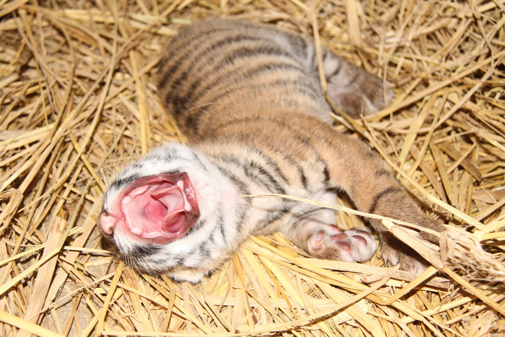 先月27日に生まれた、3頭の子トラたち。
