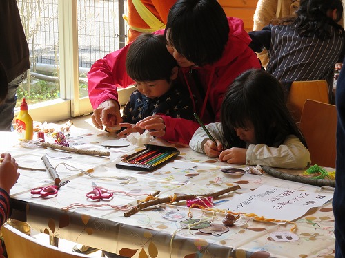 お母さんといっしょに工作中♪みなさん真剣です。