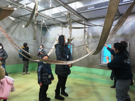 部屋の中にあるいろいろなものを飼育係が説明します。