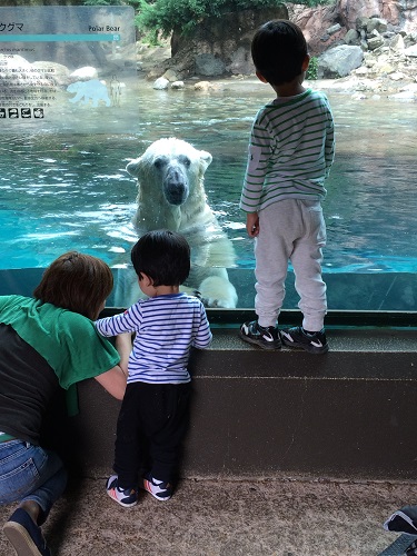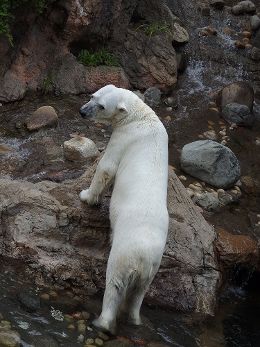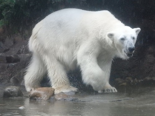 5月の中旬ころまでは、ほとんどをプールの中で遊んで過ごし、以前まで居たバリーバ(メス)だったら、とうにテクテク歩きの時期に入っているのに、ツヨシはずっと遊んでいるのかしら?と思っていたら...。やっぱり、くまによって時期のズレこそあれ、季節に合わせて行動が変わってくるのはツヨシも同じようです。