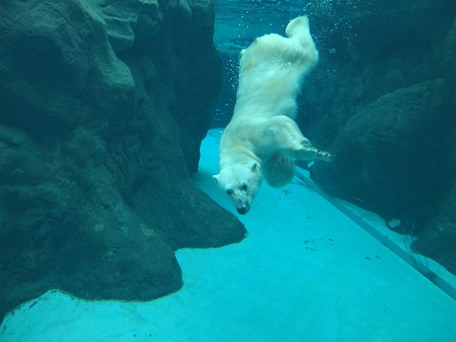 泳ぎだしたけど、なんだかジタバタ泳いでます...。