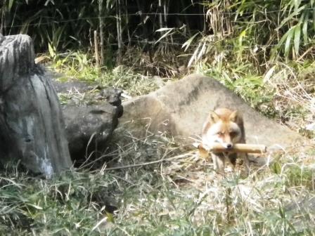 コウシロウの良き暇つぶしに、来園者の皆様にはホンドギツネの動く姿を見ていただく、