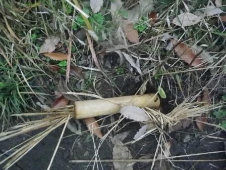 このように自分で掘った穴(窪み?)に隠してあります。
