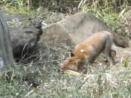 ホンドギツネは野生下で餌を土に埋めたりして隠しておき、