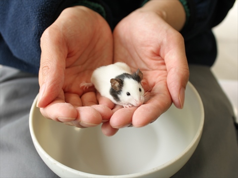 こんなに小さなパンダマウスとふれあうこともできますよ!