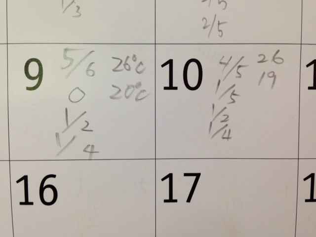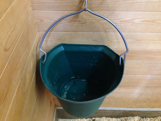 約20リットル入る桶、夕方に満水にし翌朝に残量を確認します。