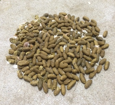 茶褐色の細長いうんち(1cm程)を1粒ずつ出します。