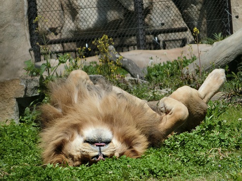 更新日:2016.05.10とある日のオスライオン ~フクの場合~ 更新日:2016.05.10 とある日のオスライオン ~フクの場合~ とある雨の日の、アフリカライオン展示場ズーム・・・。あっ、いた。毛玉・・・いつもの場所にいないなぁと思ったら、こんなところにいました。オスライオンの「フク」雨の日は思わぬところにいることが多いフクです。チラっとある晴れた日のフクは・・・すやすやすやぁ~こんな感じです。飼育展示係 山本 この記事をシェアする Facebook Twitter LINEで送る こどもの… チーム★…