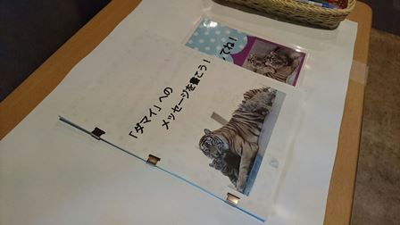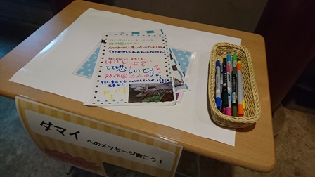 ガラスビュー横に、ダマイへのメッセージをお書きいただける用紙が置いてあります。