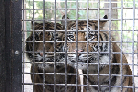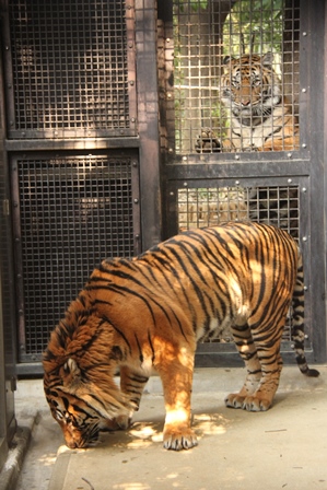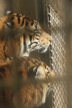 点検の様子を、興味深げに外からミンピとダマイが見ています!