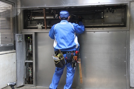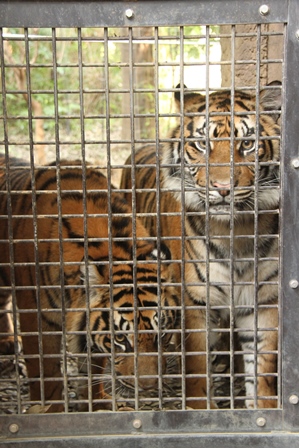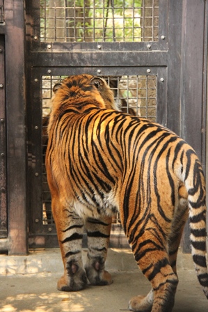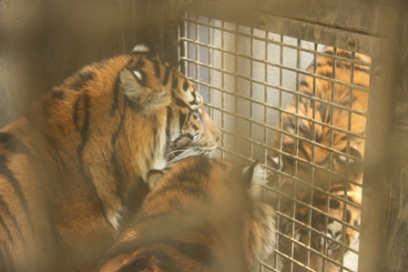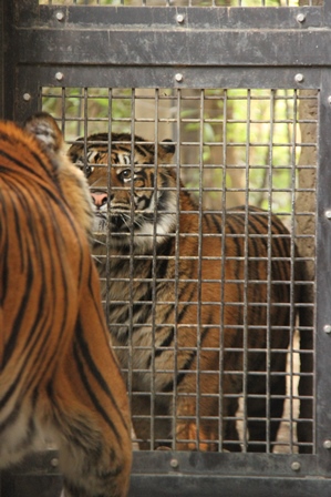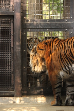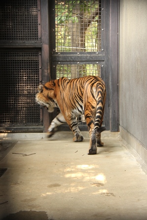 デルの部屋の扉を点検してもらうため、デルが金網1枚越しに出てきました。