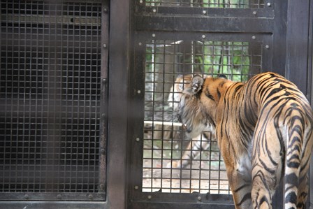 この時デルは、金網1枚でカリと向き合わないように、先に寝室に収容しています。