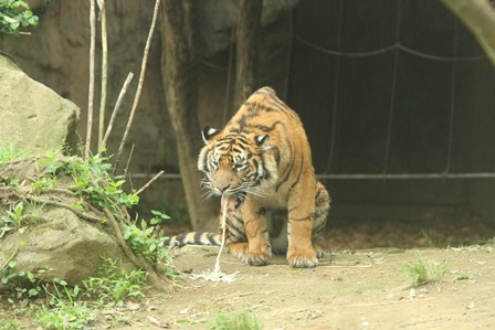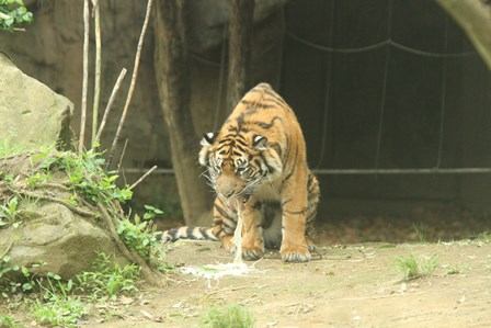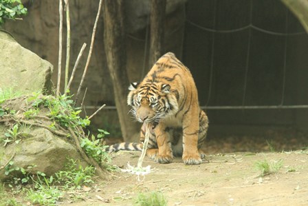 新緑が眩しいこの時期、トラの展示場にも緑が復活しつつあります(*^。^*)