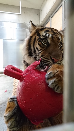 展示しない日、寂しげに鳴くことが多いミンピに与えてみました!