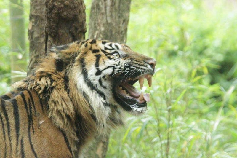ズーラシアのスマトラトラ展示場は、自然の草を使った生息環境展示なので、スマトラトラたちは自らの欲求に従い、いつでも草を食べられる状態にいます('◇')ゞ
