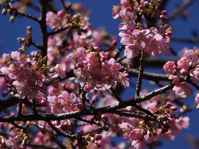 桜の様子はというと、園内バス「ゾウさんのりば」のカワヅザクラが開花しました!