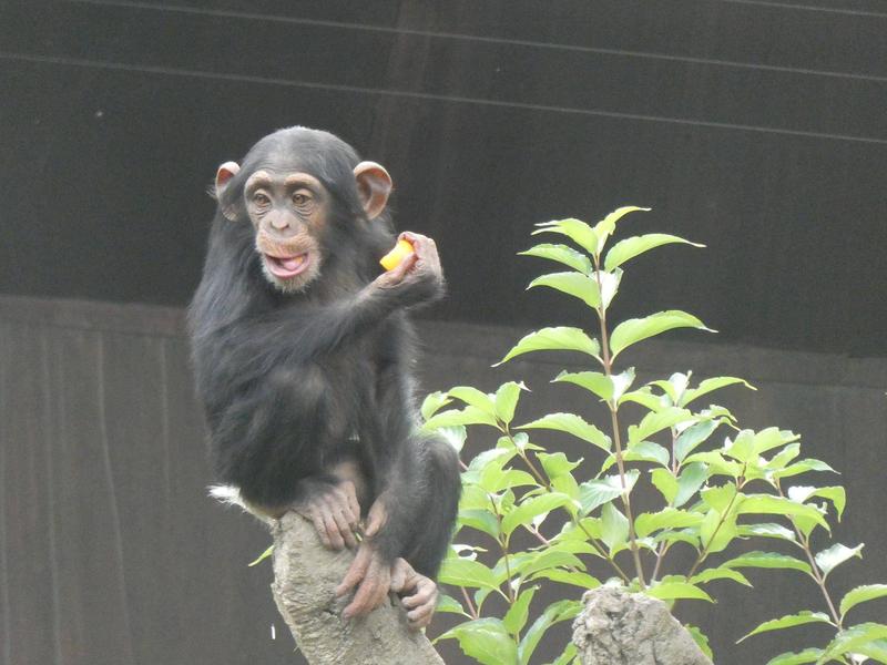 チンパンジーに旬のおやつをプレゼント、11月は柿でした!