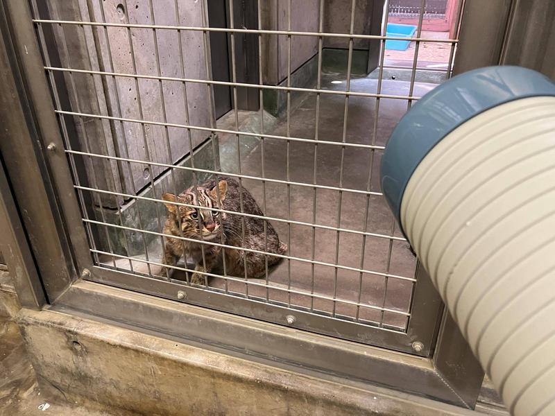 「ゆり」と「つむぎ」が暮らす非公開施設にはエアコンがあるので、「こう」と「マミ」が暮らすヤマネコ舎でそれぞれ1頭ずつ使用できるようにしました。