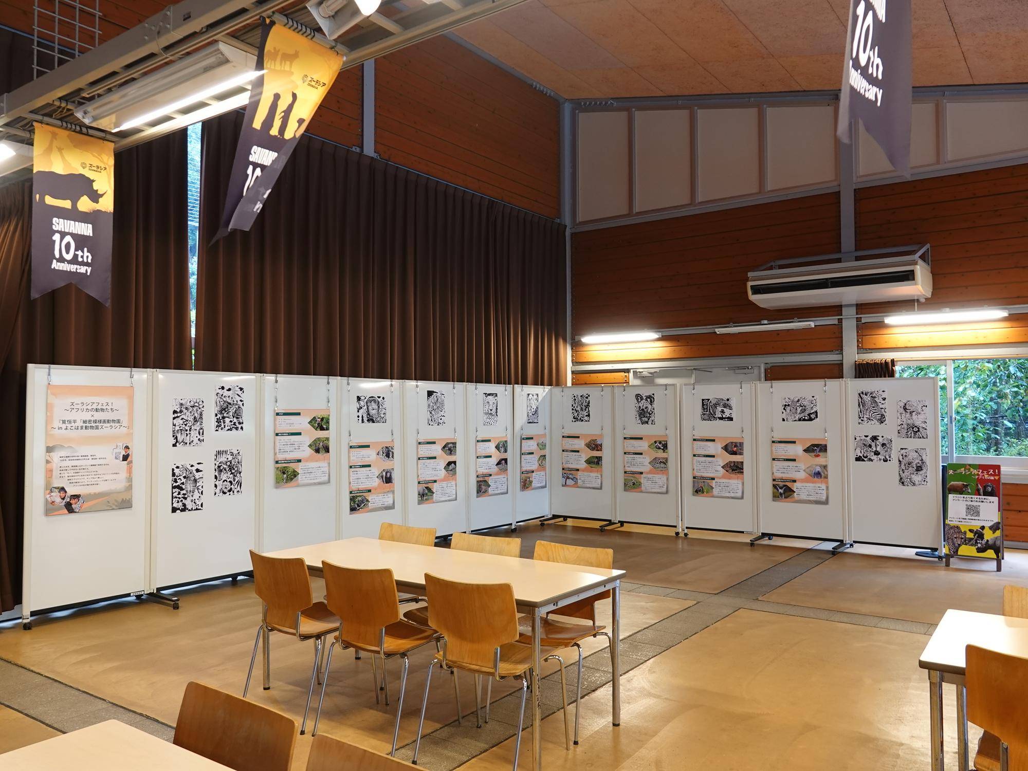 今年はズーラシアで暮らしているアフリカの動物たちをテーマに、野生での彼らの現状を学べるパネルとともに、画家の「筧恒平」氏が描いた動物たちのイラストも展示しています。