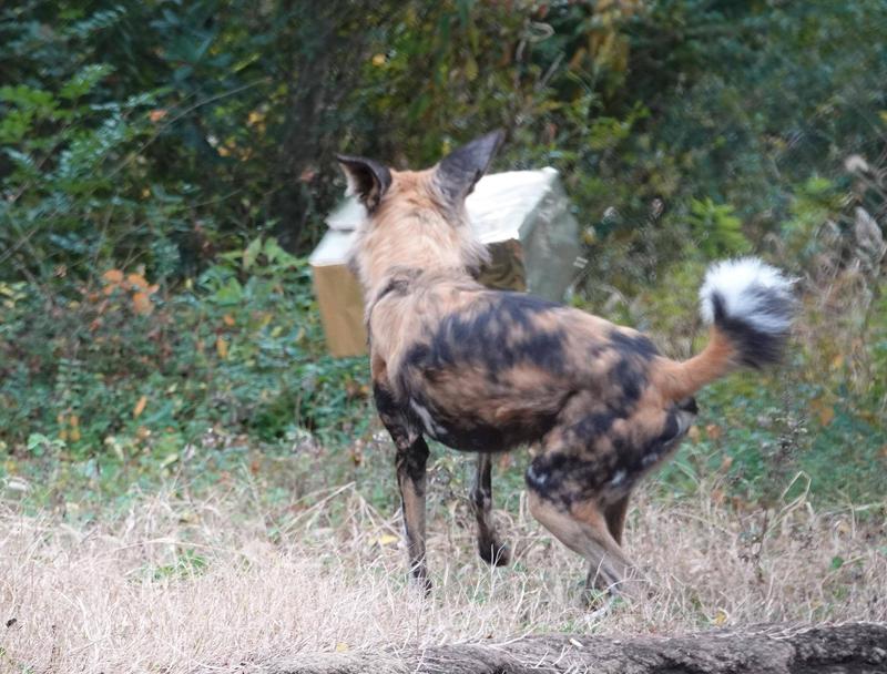 流れは同じく、リカオンを一度部屋へ戻した後、サンタ帽の飼育員がプレゼントの入った箱を設置します。