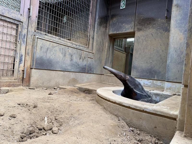 日中、オオアリクイ舎をのぞくとポピーが見当たらず、焦る担当者。