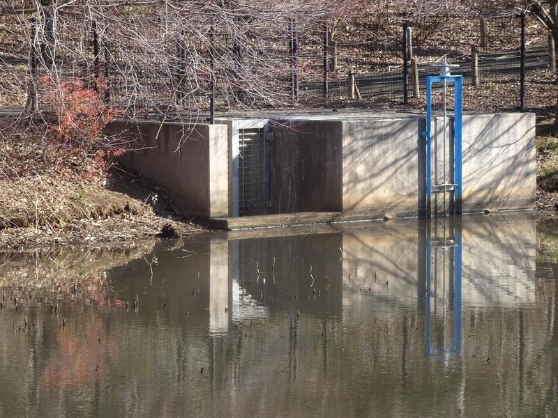 各地のダムも渇水状態になってきましたが、ズーラシアのころころ広場付近の池(遊水池)も、見たことがないくらい水位が下がっています。