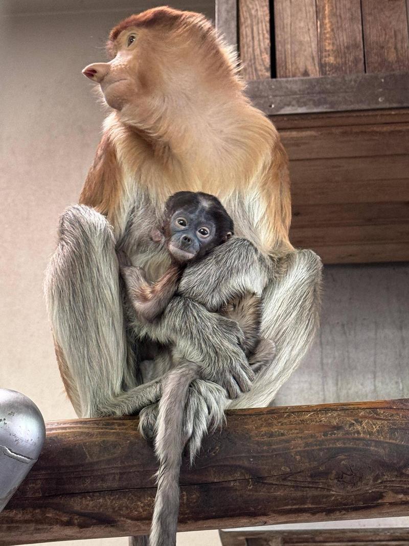 12~2月の間、寒さが苦手なテングザルは展示をお休みとさせていただいておりましたが、1月26日にオスのゲンキとメスのジャスミンの間にオスの赤ちゃんが誕生しました!!!パチパチ~☆