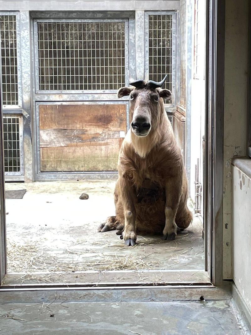 当園のゴールデンターキンは休息するとき、伏臥位(伏せの姿勢)で肢を伸ばして休んでいることが多いです。