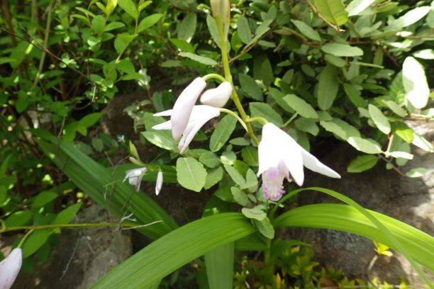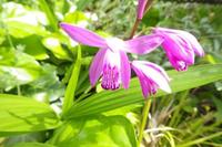 日本の関東から沖縄、台湾、中国に自生する、ラン科シラン属の多年草です。育てやすいランであることから、園芸で見かける機会は多くありますが、野生種は準絶滅危惧種に指定されています。花期は4月から5月、花は紫紅色で、30~50cm程度の花茎の先に数個つきます。花弁は細長く、筒状に咲きます。花の色が白色のもの、斑入りのもの、淡いピンク色のものなどがあります。