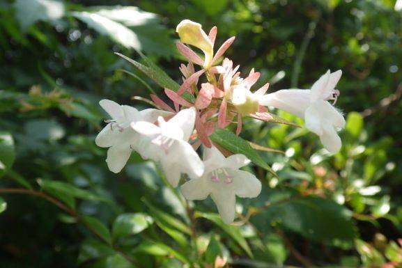 スイカズラ科ツクバネウツギ属の常緑低木です。大正末期に渡来し、生垣などによく植えられています。5~11月と長期にわたって、鐘形の小さい花を多数咲かせます。花の香りは非常に強く、色は白色でやや淡紅色を帯びます。