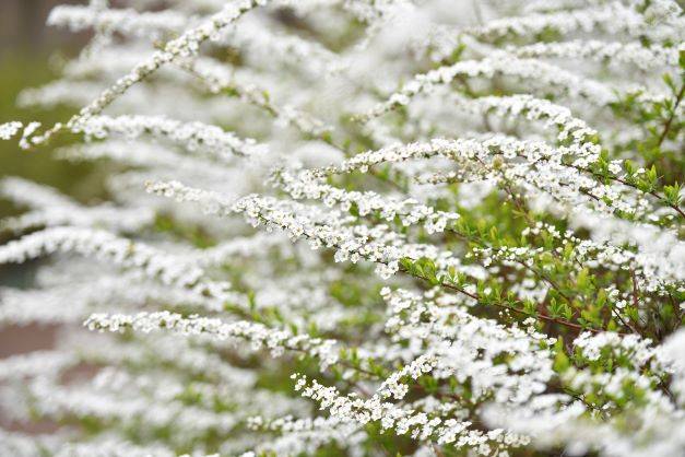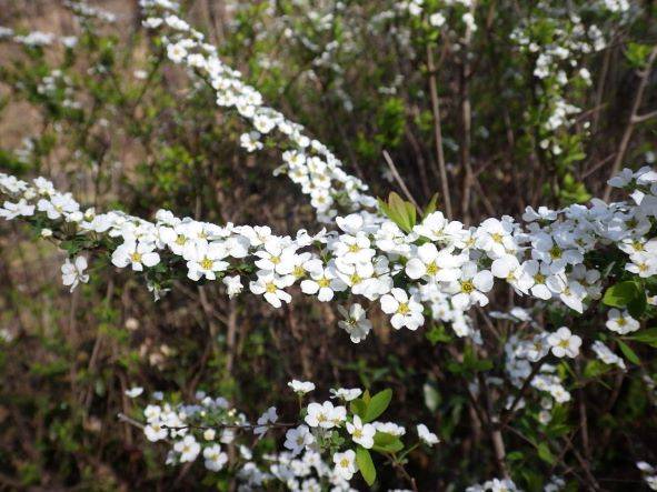 春になると雪が降り積もったように小さな白い花を枝いっぱいに咲かせ、枝葉の様子がシダレヤナギに似ていることから、ユキヤナギと名付けられました。