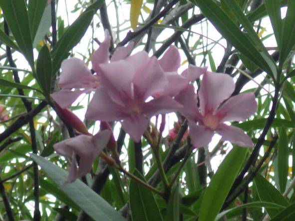 キョウチクトウという名は漢名「夾竹桃」の音読みで、葉や樹形が竹に、花色が桃に似ていることによります。