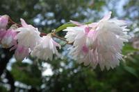 花は八重咲きで、花びらの外側が紅紫色、内側が白色です。