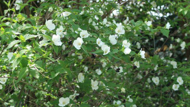 春に白い花を咲かせるバラ科シロヤマブキ属の落葉低木です。